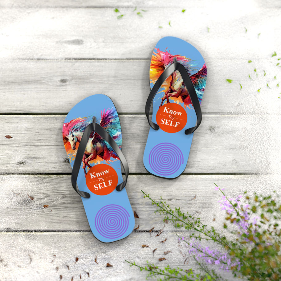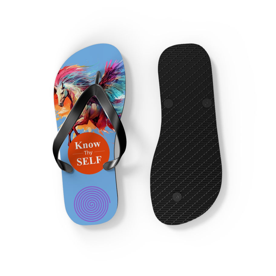 Colorful Pegasus Flip Flops - 'Know Thyself' Summer Sandals