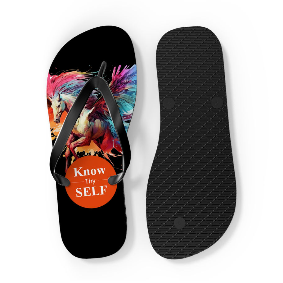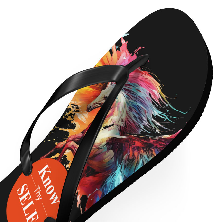 Colorful Pegasus Flip Flops - 'Know Thyself' Summer Sandals